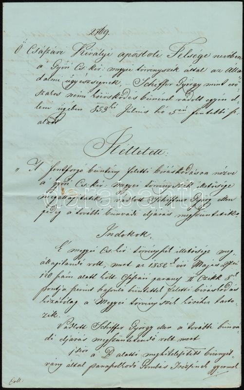1853 A győr vármegyei törvényszék ítéletlevele nemi erőszak megalapoza... https://www.darabanth.com/hu/308-Gyorsarveres/308.0/Festmeny-mutargy-papirregiseg-egyeb/Okmanyok~16/1853-A-gyor-varmegyei-torvenyszek-iteletlevele-nemi-eroszak-megalapozatlan-gyanuja-ugyebe~II1670418
