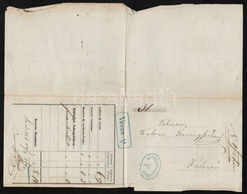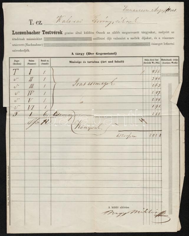 Leírás: 1861 Luczenbacher Testvérek fuvarlevél