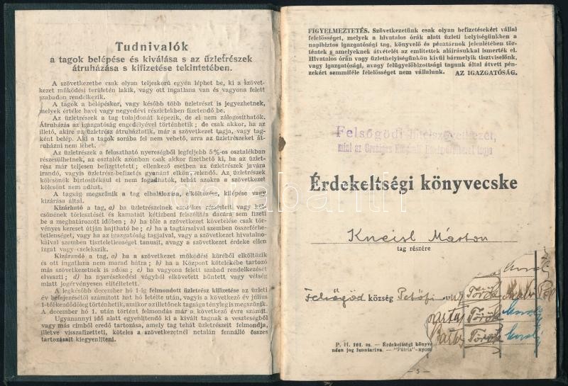 Leírás: 1939 Hitelszövetkezeti Érdekeltségi könyvecske bizonylatokkal