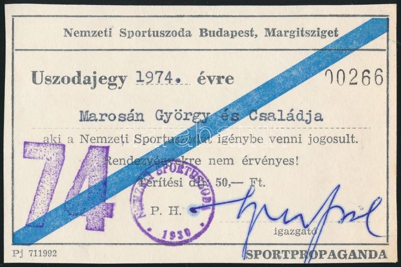 Leírás: 1974 Marosán György politikus éves uszodabérlete a Nemzeti Sportuszodába