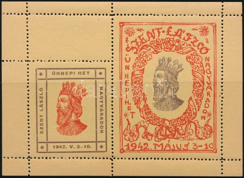 Leírás: 1942 Szt. László levélzáró blokk fázisnyomata sárga papíron