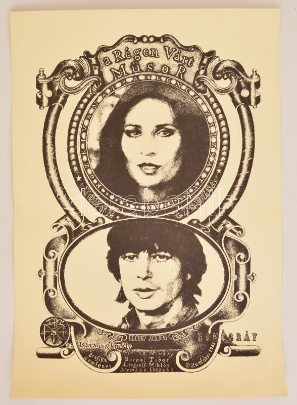 1986 Zemlényi Csaba (1943-): Koncertműsoros plakát, Koncz Zsuzsa, Bród... https://www.darabanth.com/hu/308-Gyorsarveres/308.0/Festmeny-mutargy-papirregiseg-egyeb/Plakat~28/1986-Zemlenyi-Csaba-1943-Koncertmusoros-plakat-Koncz-Zsuzsa-Brody-Janos-Istvan-a-kiraly~II1673236