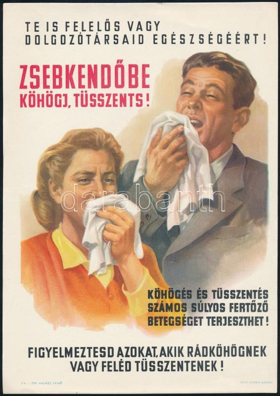 cca 1965 "Zsebkendőbe köhögj, tüsszents!" egészségügyi felv... https://www.darabanth.com/hu/308-Gyorsarveres/308.0/Festmeny-mutargy-papirregiseg-egyeb/Plakat~28/cca-1965-Zsebkendobe-kohogj-tusszents-egeszsegugyi-felvilagosito-villamos-plakat-24~II1668958