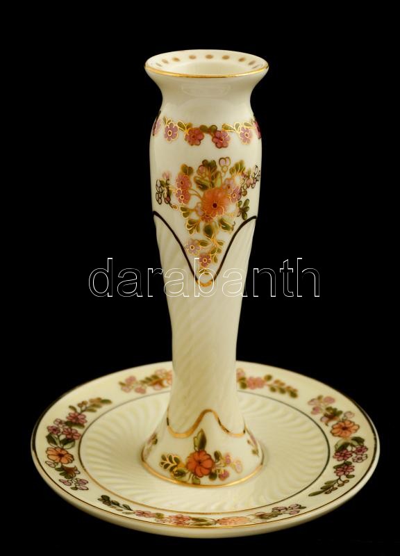 Leírás: Zsolnay virágmintás gyertyatartó, kézzel festett, jelzett, hibátlan, m: 14 cm