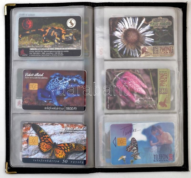 Leírás: 81 db használt telefonkártya, magyar és külföldi, köztük sok állat motívumos, 2 db berakóban