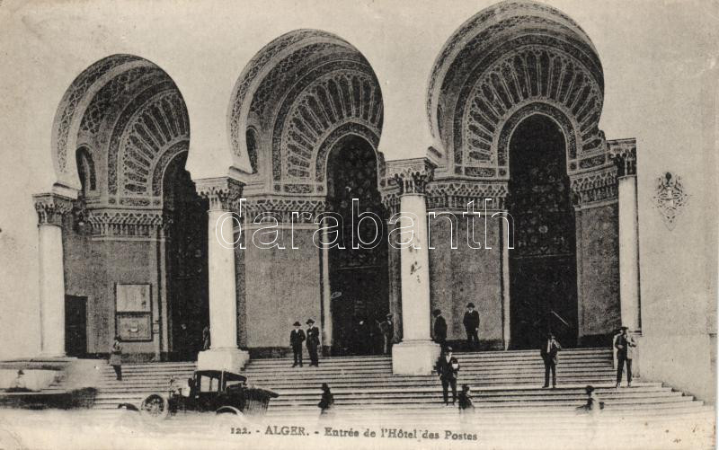 Algiers, Alger; Entrée de l'Hotel des Postes / automobiles (EK) https://www.darabanth.com/hu/308-Gyorsarveres/308.0/Kepeslapok/Algeria~400015/Algiers-Alger-Entree-de-lHotel-des-Postes-automobiles-EK~II850702