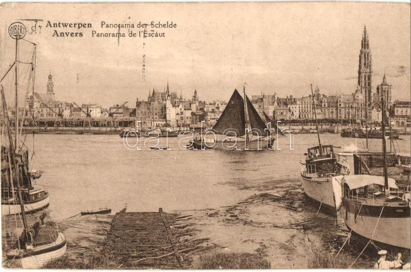 Antwerpen, Anvers; Schelde / Escaut / port with ships https://www.darabanth.com/hu/308-Gyorsarveres/308.0/Kepeslapok/Belgium~400019/Antwerpen-Anvers-Schelde-Escaut-port-with-ships~II1476939