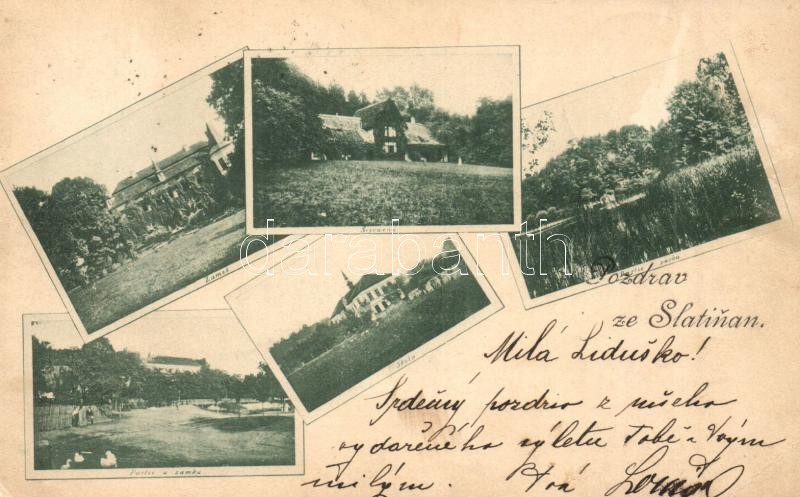 Leírás: Slatinany, Zamek, Svycarna, Partie parku, Skola, Partie u zamku / castle, rest house, park, school, street view (EK)