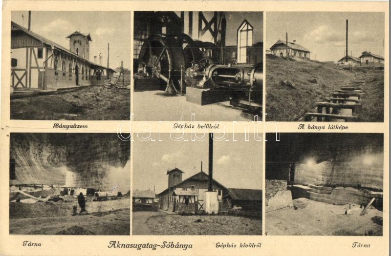 Aknasugatag, Ocna Sugatag; Sóbánya, bányaüzem, gépház kívülről és belülről, látkép, tárna, Márton Jenő felvételei / salt mine, engine room exterior and interior, general view, adits (EK)
