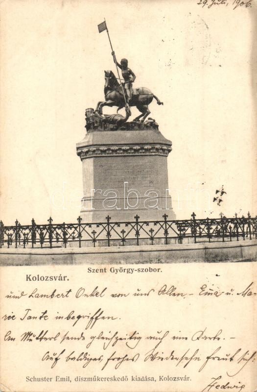 Kolozsvár, Cluj; Szent György szobor. Schuster Emil kiadása / statue (... https://www.darabanth.com/hu/308-Gyorsarveres/308.0/Kepeslapok/Erdely~400008/Kolozsvar-Cluj-Szent-Gyorgy-szobor-Schuster-Emil-kiadasa-statue-EK~II1675001