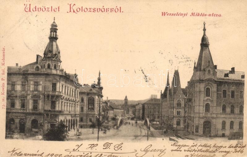 Kolozsvár, Cluj; Wesselényi Miklós utca. Kováts P. fiai kiadása https://www.darabanth.com/hu/308-Gyorsarveres/308.0/Kepeslapok/Erdely~400008/Kolozsvar-Cluj-Wesselenyi-Miklos-utca-Kovats-P-fiai-kiadasa~II1675345