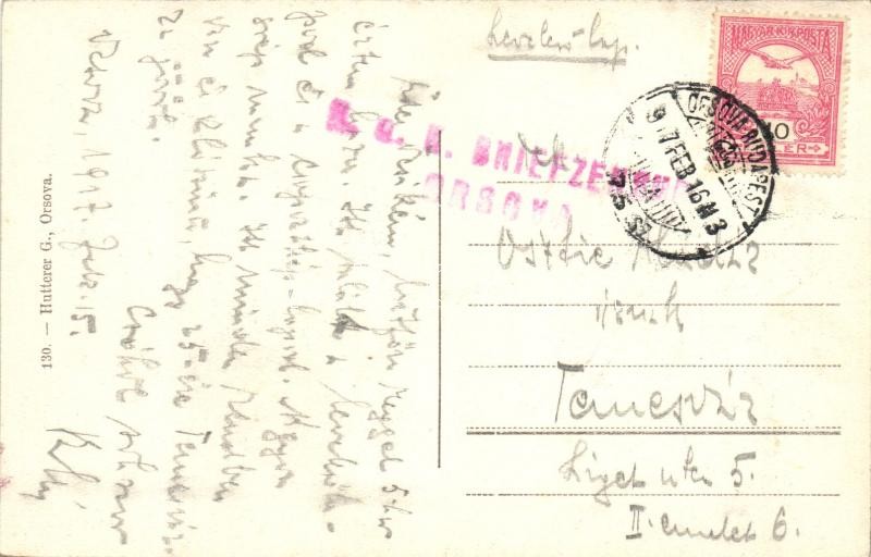 Leírás: Orsova, látkép. Hutterer G. kiadása / general view + piros K.u.K. cenzúra bélyegző