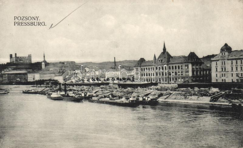 Pozsony, Pressburg, Bratislava; vár, kikötő / castle, port https://www.darabanth.com/hu/308-Gyorsarveres/308.0/Kepeslapok/Felvidek~400009/Pozsony-Pressburg-Bratislava-var-kikoto-castle-port~II839270