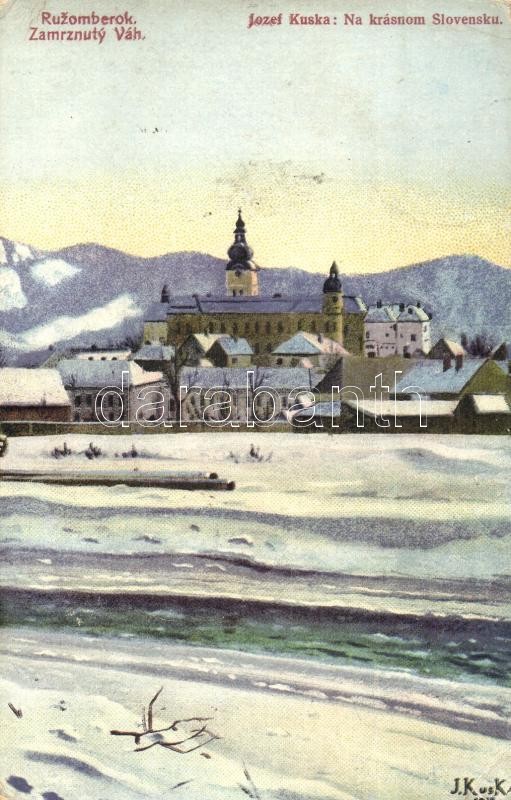 Leírás: Rózsahegy, Ruzomberok; Zamrznuty Váh / fagyott Vág folyó télen / frozen Váh river in winter s: Jozef Kuska (EK)