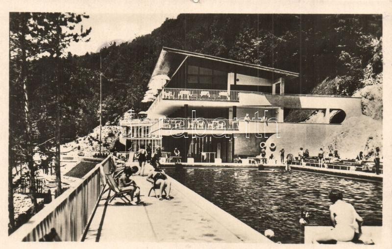 Leírás: Trencsénteplic-fürdő, Bad Trencianske Teplice; Strandfürdő, fürdőzők / Kúpaliste Zelené zaba / spa, bathing people (kis szakadás / smal tear)