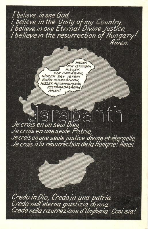 Hiszek egy Istenben... Hiszekegy négy nyelven. Magyar Nemzeti Szövetsé... https://www.darabanth.com/hu/308-Gyorsarveres/308.0/Kepeslapok/Irredenta~400061/Hiszek-egy-Istenben-Hiszekegy-negy-nyelven-Magyar-Nemzeti-Szovetseg-kiadasa-Hungarian-irre~II1672467
