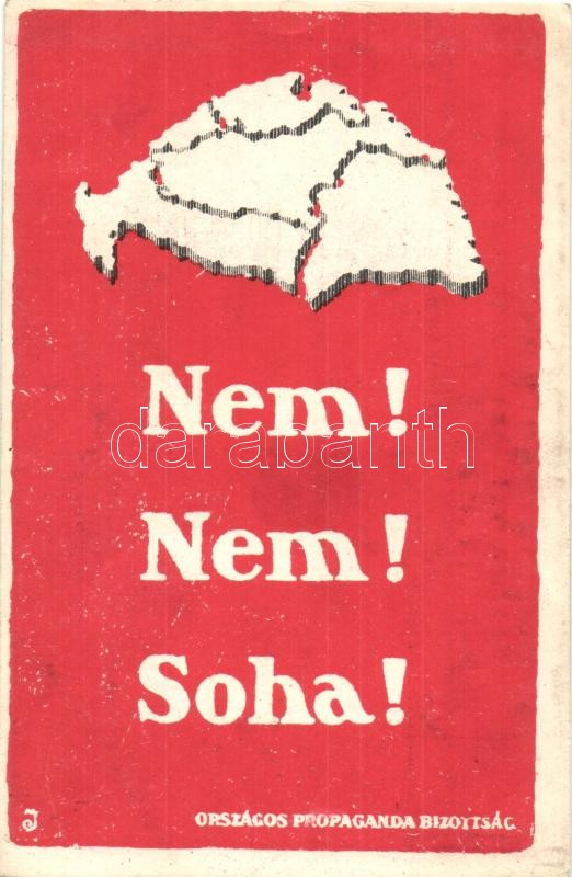 'Nem! Nem! Soha!' Kiadja az Országos Propaganda Bizottság / ... https://www.darabanth.com/hu/308-Gyorsarveres/308.0/Kepeslapok/Irredenta~400061/Nem-Nem-Soha-Kiadja-az-Orszagos-Propaganda-Bizottsag-Hungarian-irredenta-Trianon-map-EK~II1672458