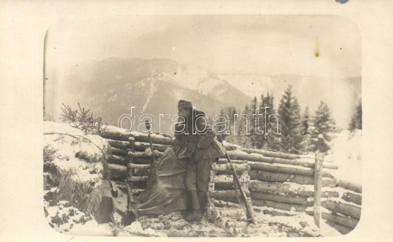 Osztrák-magyar katona télen a fronton / WWI Austro-Hungarian K.u.K. so... https://www.darabanth.com/hu/308-Gyorsarveres/308.0/Kepeslapok/Katonai~400071/Osztrak-magyar-katona-telen-a-fronton-WWI-Austro-Hungarian-KuK-soldier-at-the-front-in-winter~II1677707