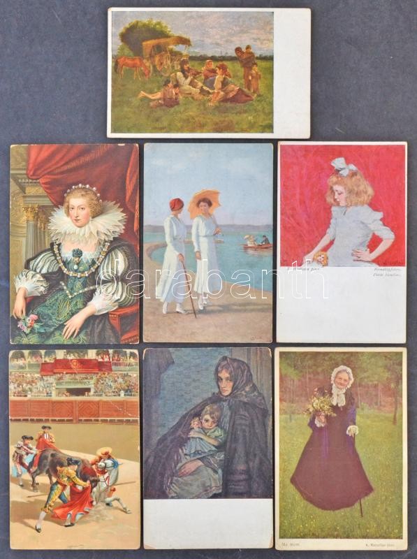 Leírás: 100 db régi motívumlap, művészlapok, üdvözlőlapok / 100 pre-1945 motive cards, art postcards, paintings, greeting cards