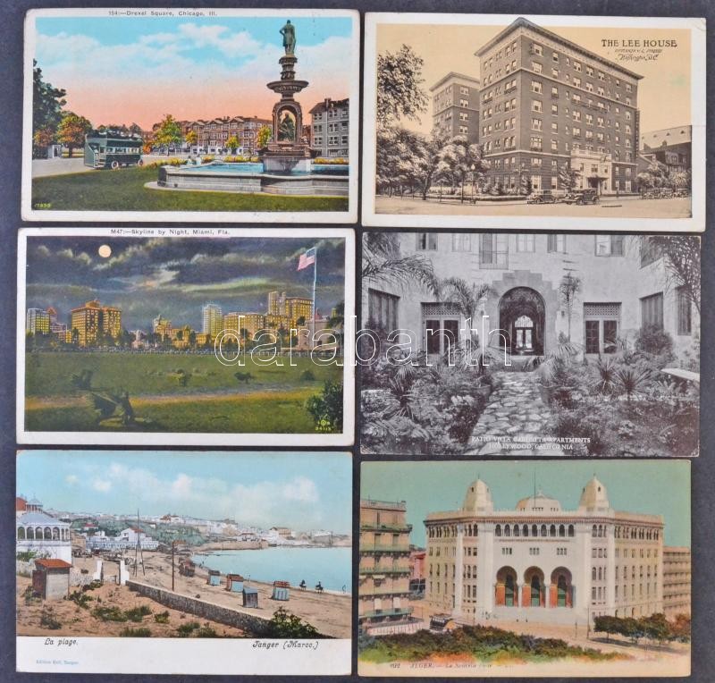 113 db RÉGI főleg külföldi városképes lap, sok érdekes darab, vegyes minőség / 113 pre-1945 mostly European, American and African town-view postcards, many interesting pieces, mixed quality