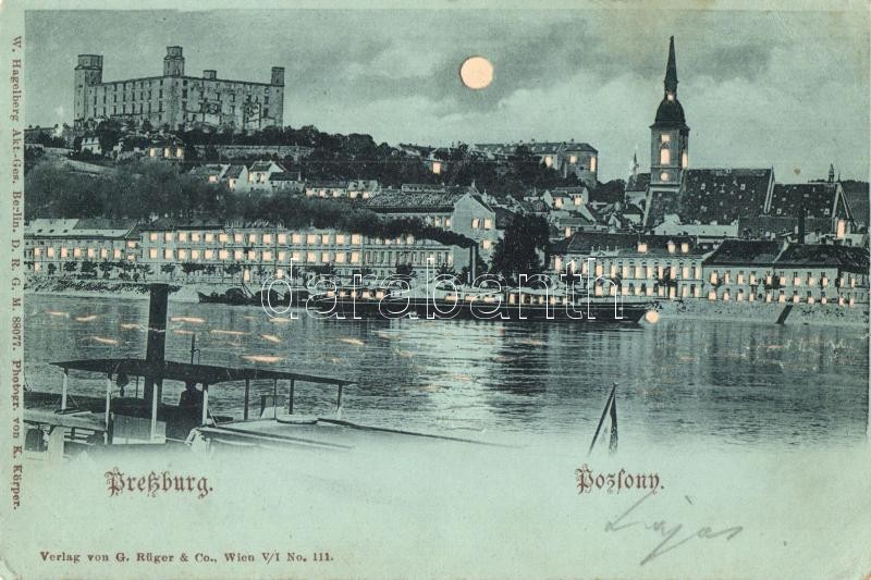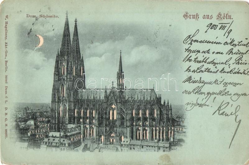 4 db régi (1899 és 1900) fény felé tartandó városképes lap (Budapest, Pozsony, Köln, Düsseldorf) / 4 pre-1945 hold to light town-view postcards (Budapest, Bratislava, Cologne, Düsseldorf)