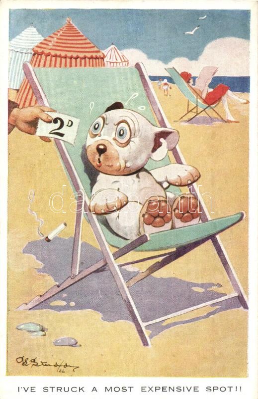 Leírás: I've struck a most expensive spot! Bonzo dog at the beach. A. R. & Co. 1. B. 1576. s: G. E. Studdy