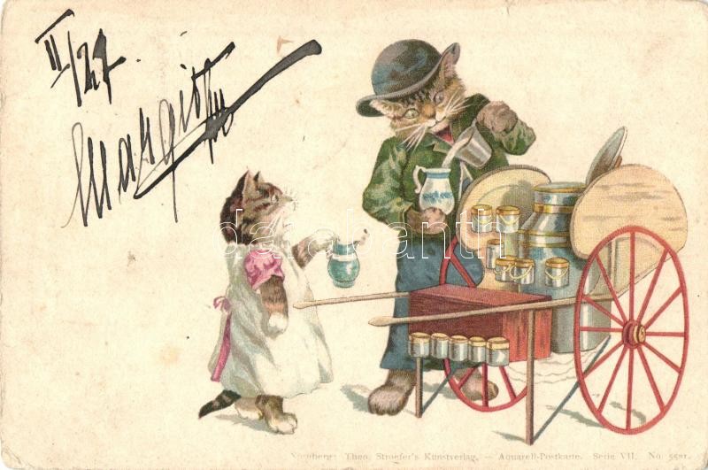 1899 Cats drinking milk. Theo Stroefer's Kunstverlag Aquarell-Pos... https://www.darabanth.com/hu/308-Gyorsarveres/308.0/Kepeslapok/Macska~400080/1899-Cats-drinking-milk-Theo-Stroefers-Kunstverlag-Aquarell-Postkarte-Serie-VII-No-5521-litho-~II1657576