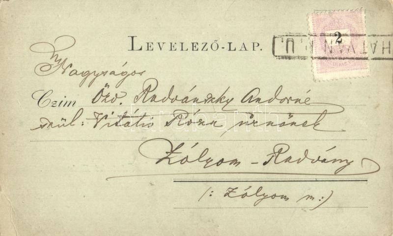 Leírás: 1899 Hatvan, Honvéd szobor, iskola, Városháza, Járási Bírói hivatal, Takarékpénztár és posta, floral, Art Nouveau (apró szakadás / tiny tear)