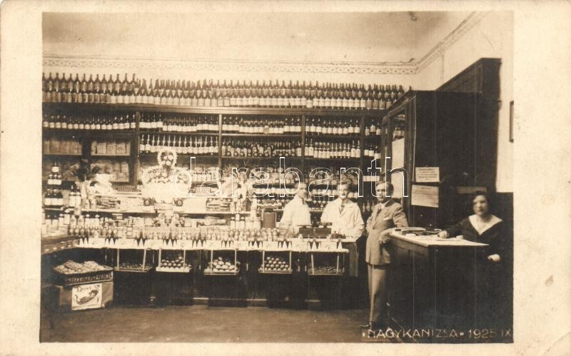 1925 Nagykanizsa, üzlet belső eladókkal. photo (EK) https://www.darabanth.com/hu/308-Gyorsarveres/308.0/Kepeslapok/Magyarorszag~400007/1925-Nagykanizsa-uzlet-belso-eladokkal-photo-EK~II1677331
