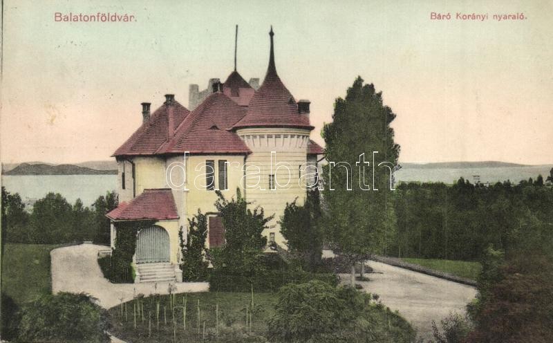 Balatonföldvár, Báró Korányi nyaraló, villa. Gerendai Gyula kiadása https://www.darabanth.com/hu/308-Gyorsarveres/308.0/Kepeslapok/Magyarorszag~400007/Balatonfoldvar-Baro-Koranyi-nyaralo-villa-Gerendai-Gyula-kiadasa~II1675249