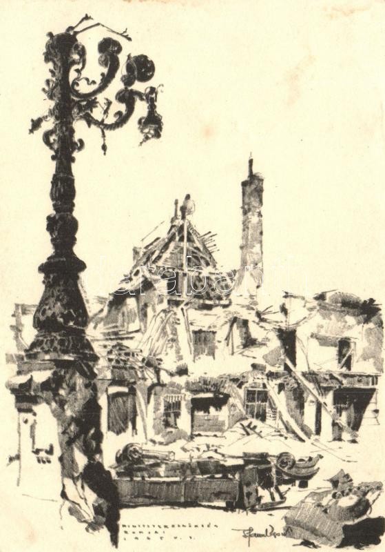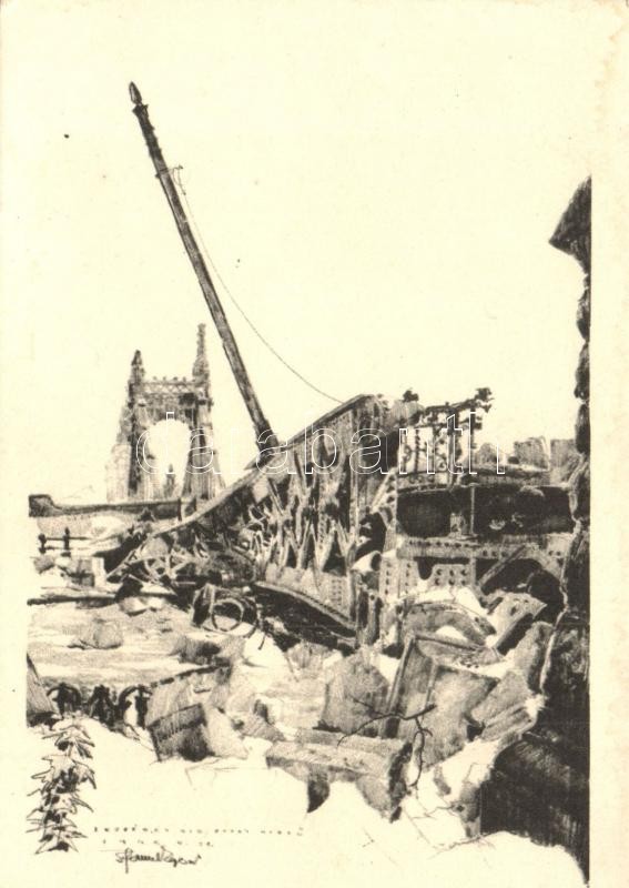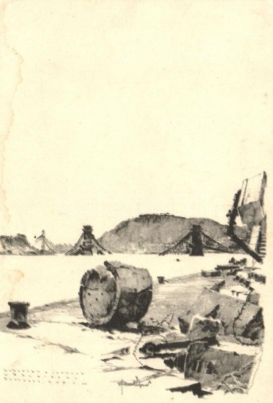 Budapest - 3 db városképes lap a lerombolt városról, romok: Erzsébet híd, Miniszterelnökségi Palota, Budai Duna part / 3 town-view postcards after the WWII, ruins in the city