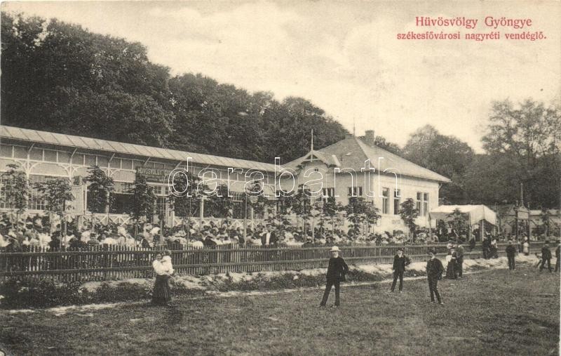 Leírás: Budapest II. Hűvösvölgy Gyöngye Márth Mihály székesfővárosi nagyréti vendéglője, étterem (EK)