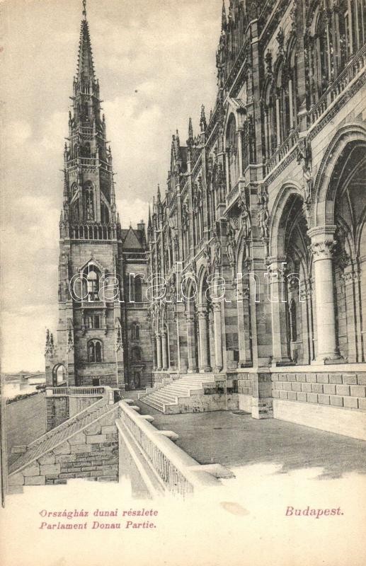 Budapest V. Országház dunai részlete. Divald Károly 491. sz. https://www.darabanth.com/hu/308-Gyorsarveres/308.0/Kepeslapok/Magyarorszag~400007/Budapest-V-Orszaghaz-dunai-reszlete-Divald-Karoly-491-sz~II1674466
