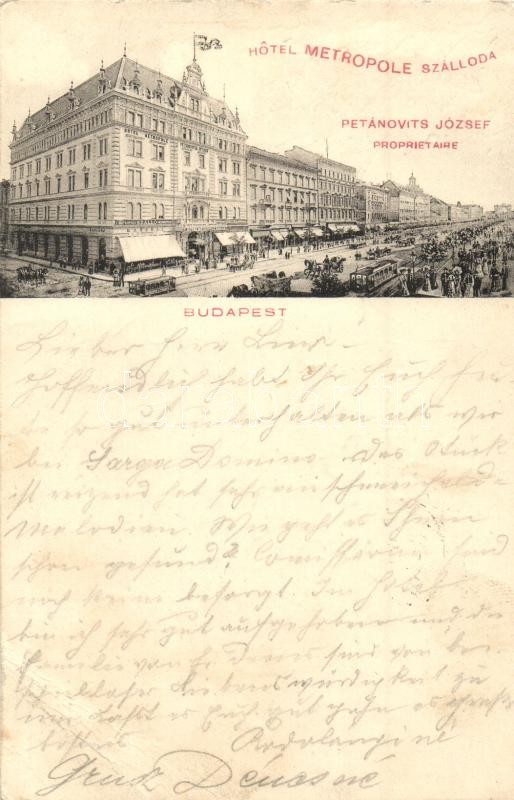 Budapest VII. Rákóczi út 58. Petánovits József Hotel Metropole szállod... https://www.darabanth.com/hu/308-Gyorsarveres/308.0/Kepeslapok/Magyarorszag~400007/Budapest-VII-Rakoczi-ut-58-Petanovits-Jozsef-Hotel-Metropole-szalloda-villamos-uzletek-k~II1674051