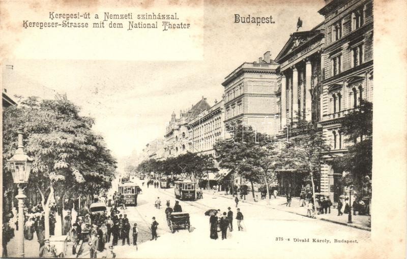 Budapest VIII. Kerepesi út (Rákóczi út), Nemzeti színház, villamosok. ... https://www.darabanth.com/hu/308-Gyorsarveres/308.0/Kepeslapok/Magyarorszag~400007/Budapest-VIII-Kerepesi-ut-Rakoczi-ut-Nemzeti-szinhaz-villamosok-Divald-Karoly-375-sz~II1674155
