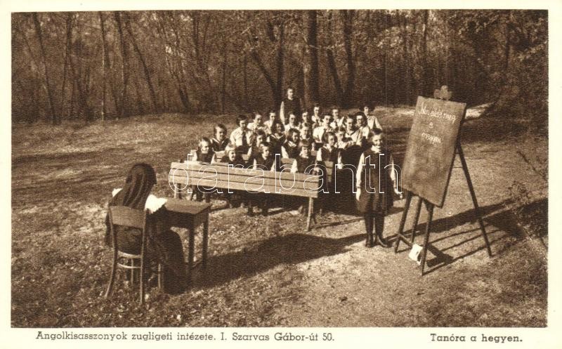 Leírás: Budapest XII. Zugliget, Angolkisasszonyok Intézete, tanóra a hegyen