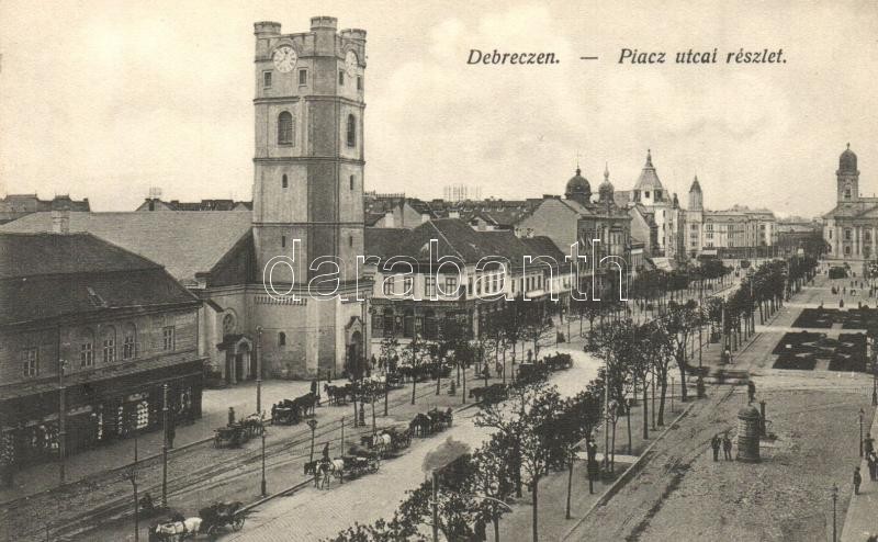 Debrecen, Piac utca, villamos, üzletek. Ifj. Gyürky Sándor kiadása https://www.darabanth.com/hu/308-Gyorsarveres/308.0/Kepeslapok/Magyarorszag~400007/Debrecen-Piac-utca-villamos-uzletek-Ifj-Gyurky-Sandor-kiadasa~II1677661