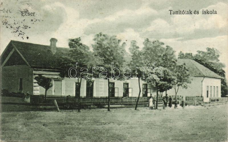 Leírás: Ecser, Tanító lak és iskola. Hangya fogyasztási szövetkezet kiadása (EK)