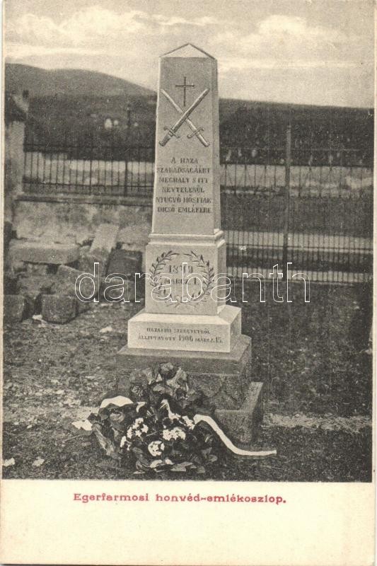 Egerfarmos, honvéd emlékoszlop https://www.darabanth.com/hu/308-Gyorsarveres/308.0/Kepeslapok/Magyarorszag~400007/Egerfarmos-honved-emlekoszlop~II1657555