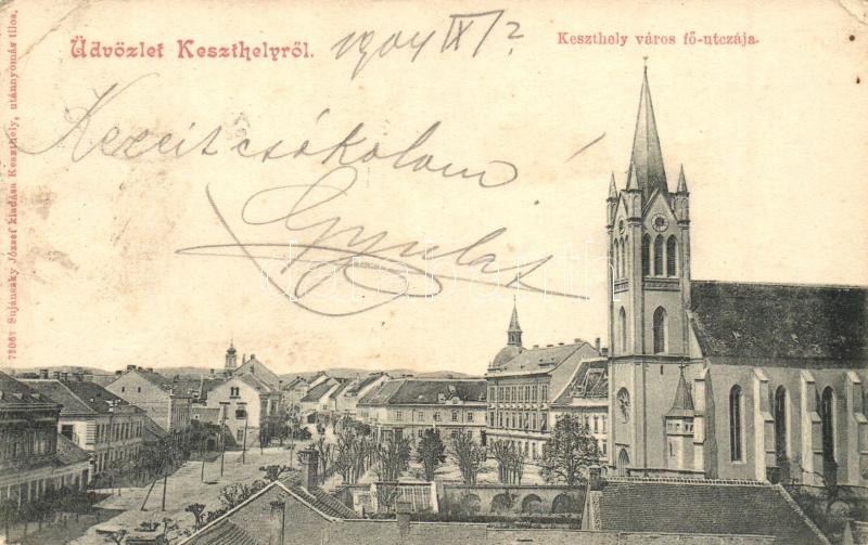 Keszthely, Fő utca, templom. Sujánszky József kiadása (EK) https://www.darabanth.com/hu/308-Gyorsarveres/308.0/Kepeslapok/Magyarorszag~400007/Keszthely-Fo-utca-templom-Sujanszky-Jozsef-kiadasa-EK~II1674807