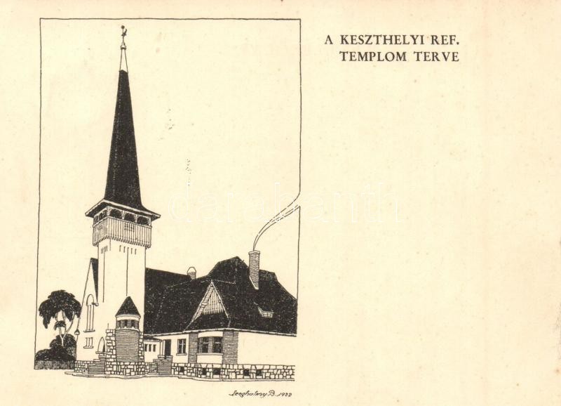 Keszthely, Református templom terve s: Szeghalmy B. - képeslapfüzetből https://www.darabanth.com/hu/308-Gyorsarveres/308.0/Kepeslapok/Magyarorszag~400007/Keszthely-Reformatus-templom-terve-s-Szeghalmy-B--kepeslapfuzetbol~II1674854