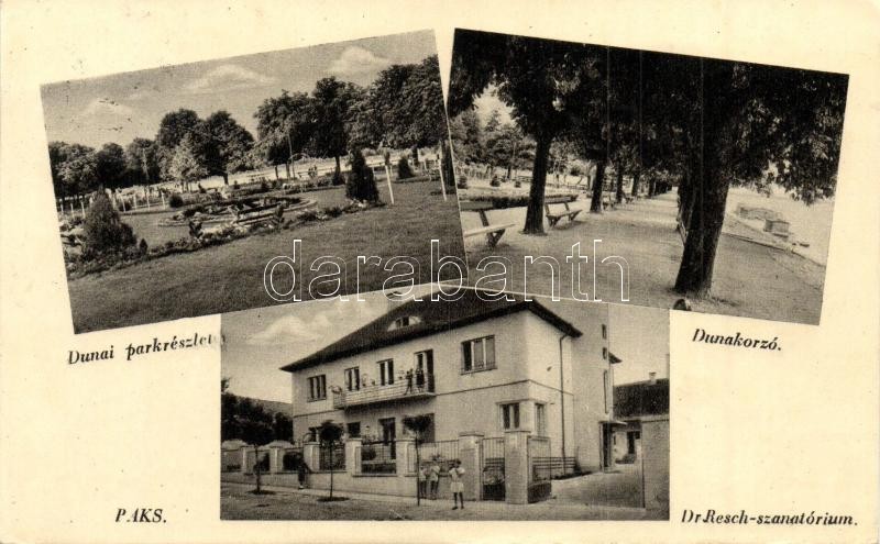 Paks, Dunai park és korzó, Dr. Resch szanatórium. Rosenbaum Ignác kiad... https://www.darabanth.com/hu/308-Gyorsarveres/308.0/Kepeslapok/Magyarorszag~400007/Paks-Dunai-park-es-korzo-Dr-Resch-szanatorium-Rosenbaum-Ignac-kiadasa-EK~II1675954