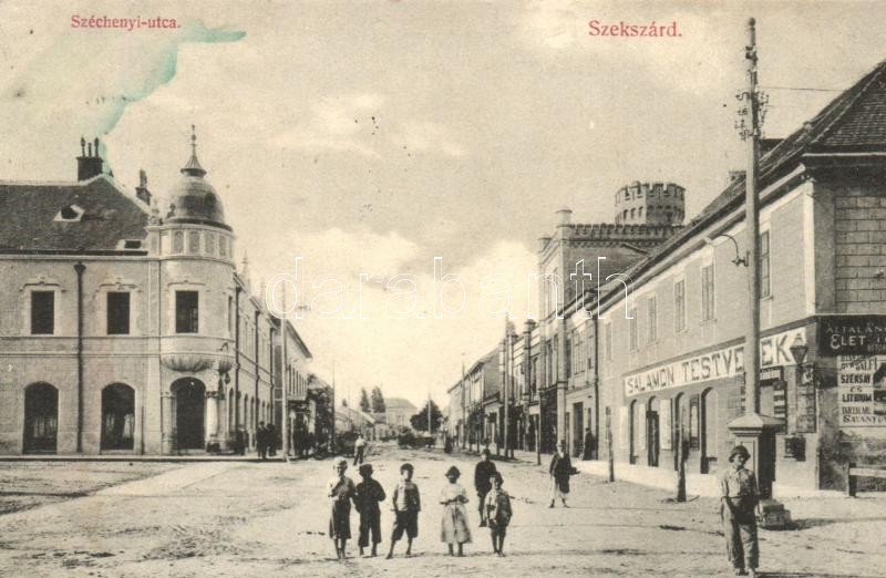 Leírás: Szekszárd, Széchenyi utca, Salamon Testvérek üzlete. Krammer Vilmos kiadása