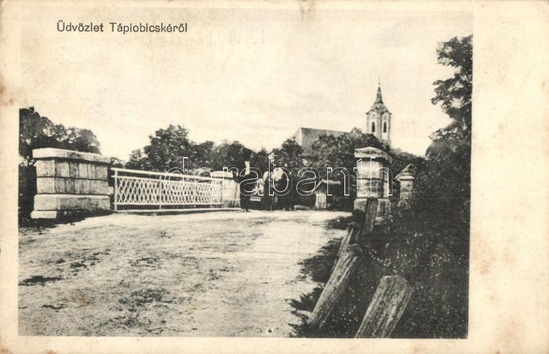 Leírás: Tápióbicske, utcakép, Kő híd, templom. Rein J. Mihály kiadása (Rb)