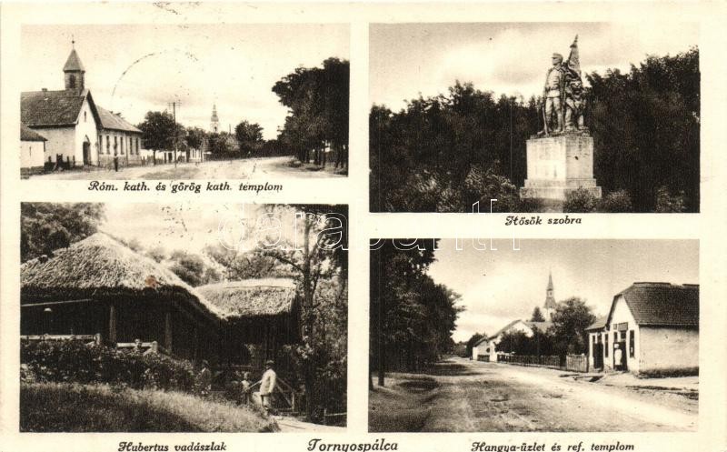 Tornyospálca, Római katolikus és görögkatolikus templom, Hősök szobra, Hubertus vadászlak, Református templom, Hangya fogyasztási szövetkezet üzlete és kiadása