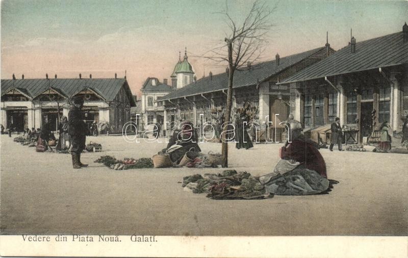 Leírás: Galati, Galatz; Vedere din Piata Noua. Edit. Librarie Negoescou & Mantitiu / new market square, vendors