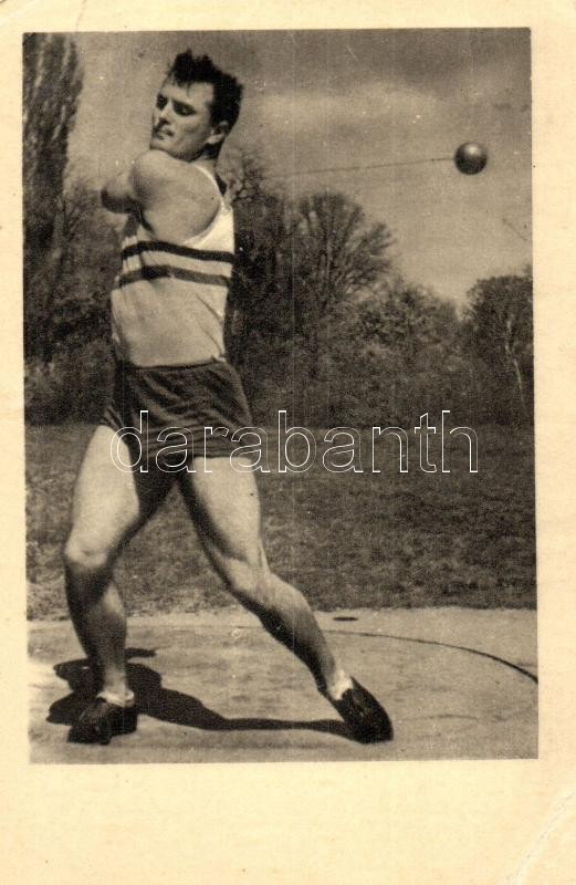Kalapácsvetés. Előlengetés, Csermák József olimpiai bajnok. Képzőművés... https://www.darabanth.com/hu/308-Gyorsarveres/308.0/Kepeslapok/Sport~400067/Kalapacsvetes-Elolengetes-Csermak-Jozsef-olimpiai-bajnok-Kepzomuveszeti-Alap-kiadasa-~II1676686