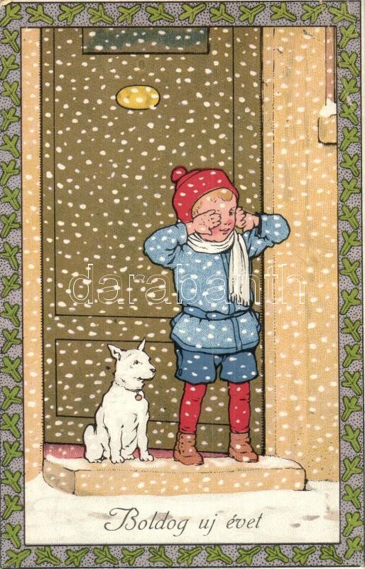 Boldog Újévet! / New Year greeting card, boy and dog. Meissner & B... https://www.darabanth.com/hu/308-Gyorsarveres/308.0/Kepeslapok/Udvozlolapok-Unnepek~400060/Boldog-Ujevet-New-Year-greeting-card-boy-and-dog-Meissner-Buch-Kunstler-Postkarten-Serie-2~II1672989