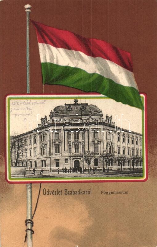 Szabadka, Subotica; Főgimnázium. Magyar zászlós litho keret / grammar ... https://www.darabanth.com/hu/308-Gyorsarveres/308.0/Kepeslapok/Vajdasag~400012/Szabadka-Subotica-Fogimnazium-Magyar-zaszlos-litho-keret-grammar-school-Hungarian-flag-lit~II1673263