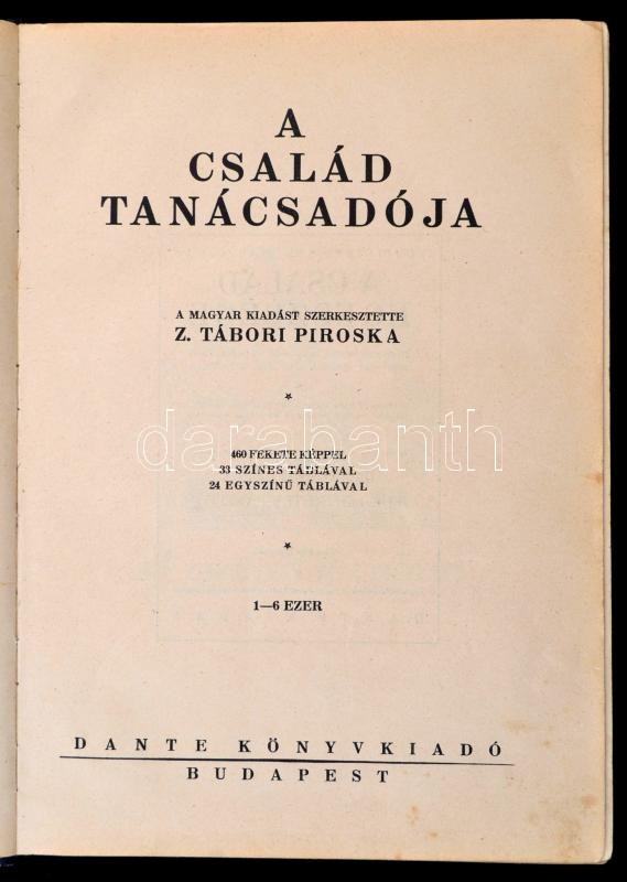 A család tanácsadója. Szerk.: Z. Tábori Piroska. Bp.,é.n., Dante Könyv... https://www.darabanth.com/hu/308-Gyorsarveres/308.0/Konyvek/Konyvek-Egyeb-ritkasagok~500018/A-csalad-tanacsadoja-Szerk-Z-Tabori-Piroska-Bp-en-Dante-Konyvkiado-Kiadoi-aranyozo~II1666974